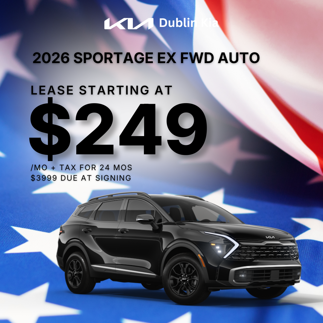 DISCLAIMER == Dublin Kia Dublin, California Bay Area Northern California.Lease based on 2026 SPORTAGE EX FWD AUTO (VIN 4TG404031.) MSRP of $33,135- $3,999 total amount due at lease signing including $249 first monthly payment, $24,851.25 capitalized cost reduction, $650 acquisition fee, plus taxes, titles, license and documentary service fees. No (or $0) security deposit required. Option to purchase at lease end $4,477.25. Lessee is responsible for $.20 per mile over 10,000 miles/year, excess wear, and a $400 termination fee. Offer Expires 03/02/2026.