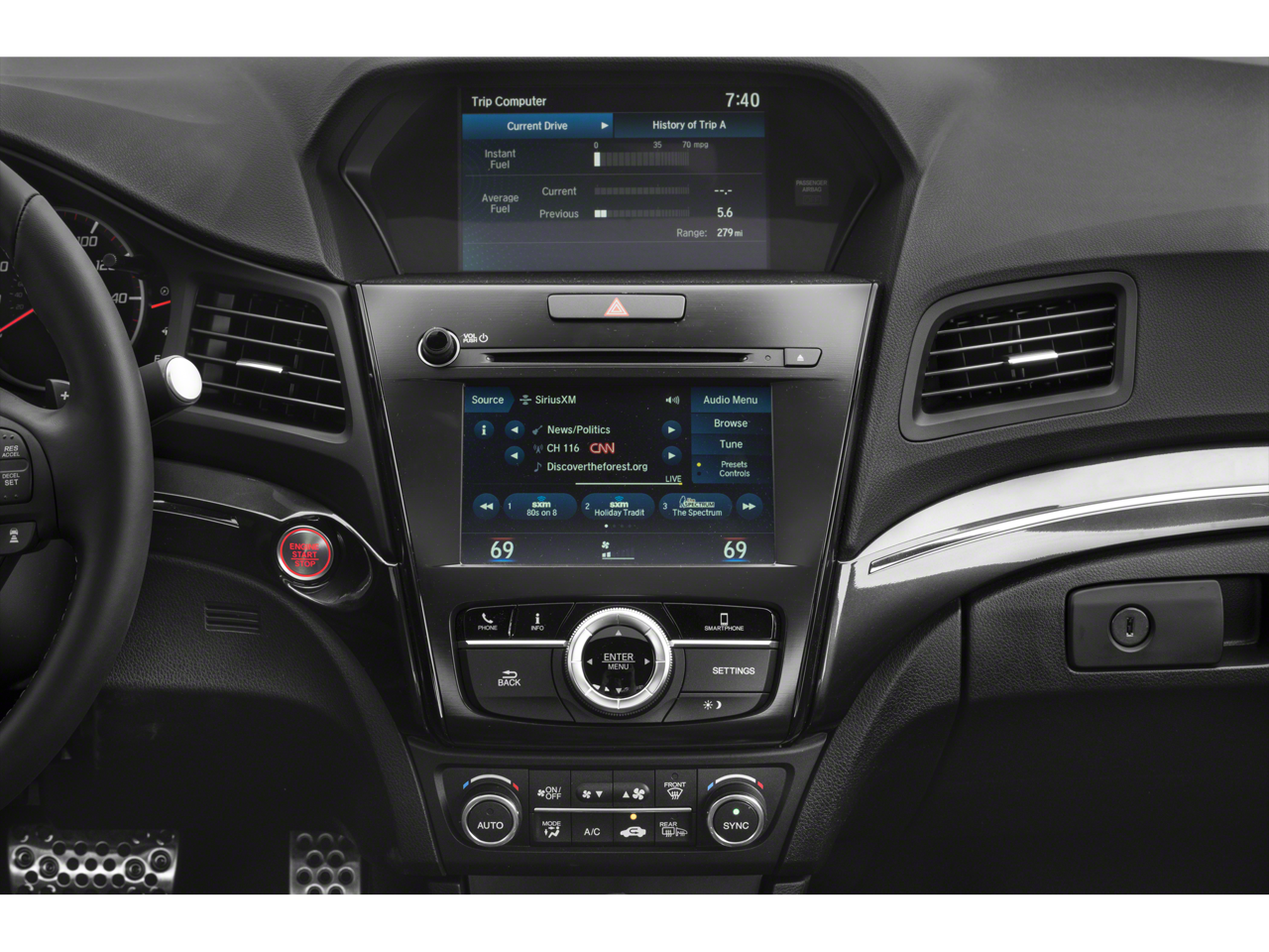 - Radio: Acura/ELS Studio Premium Audio System -inc: 10 speakers, MP3/auxiliary input jack, Speed-Sensitive Volume Compensation (SVC), USB audio interface w/iPod integration, Bluetooth® streaming audio, SiriusXM radio, HD Radio, Song By Voice, Pandora compatibility, Aha compatibility, Acura navigation system w/3D view, AcuraLink Connected Services, AcuraLink Real-Time Traffic w/Traffic Routing and exclusive street and freeway conditions, Bluetooth® HandsFreeLink wireless telephone interface, color multi-information display w/turn-by-turn guidance, On Demand Multi-Use Display (ODMD), Siri eyes free, Apple CarPlay integration, Android Auto integration and SMS/MMS text message and email capability