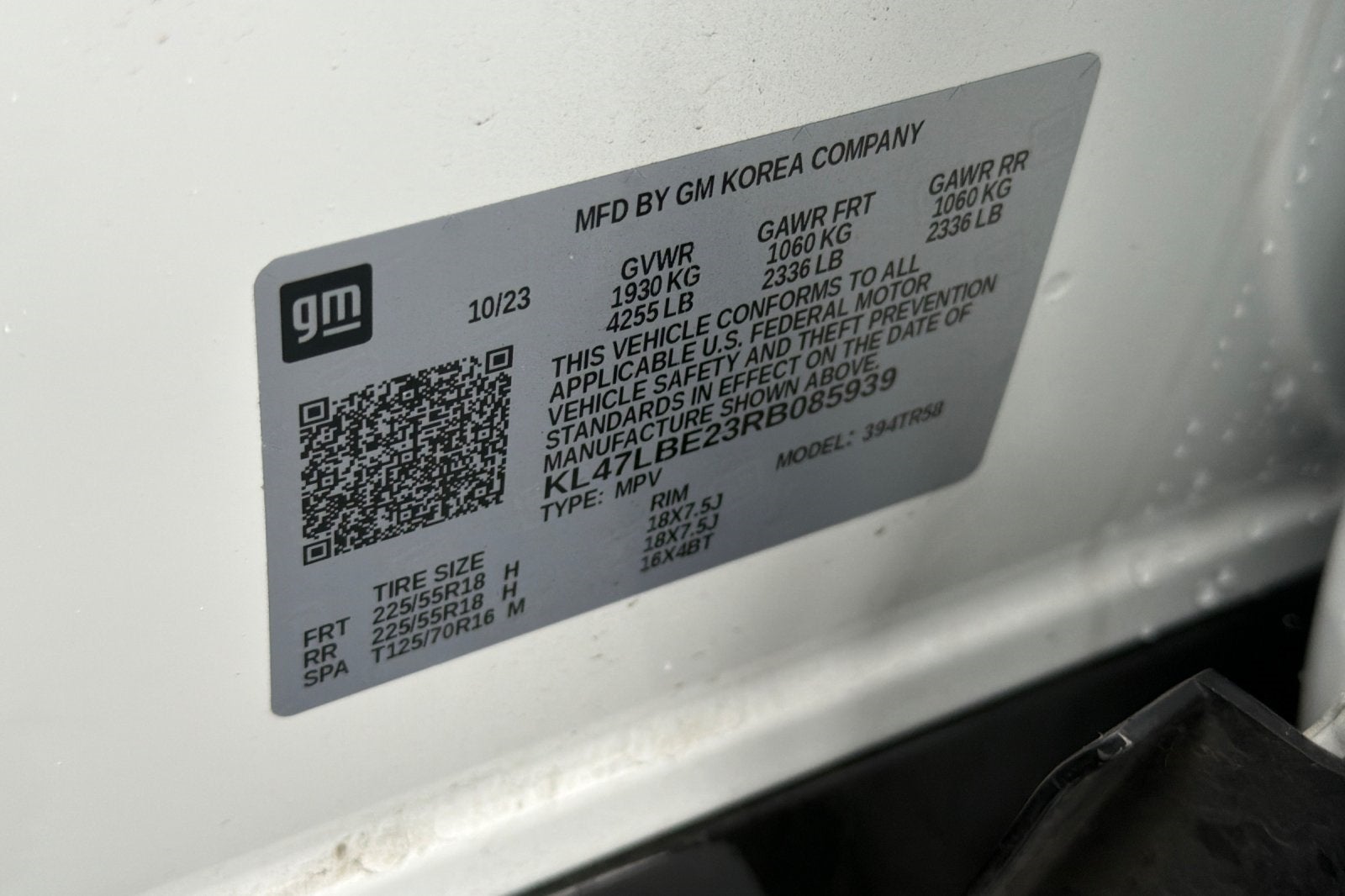 - Rear Tire Order Code: QAI