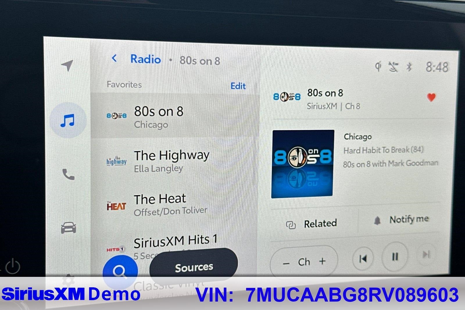 - Radio: 8" Touch-Screen Display Audio -inc: 6 speakers, wireless Android Auto compatible, wireless Apple CarPlay compatible, SiriusXM w/3-month Platinum plan trial subscription, steering wheel audio controls and Bluetooth® hands-free voice command